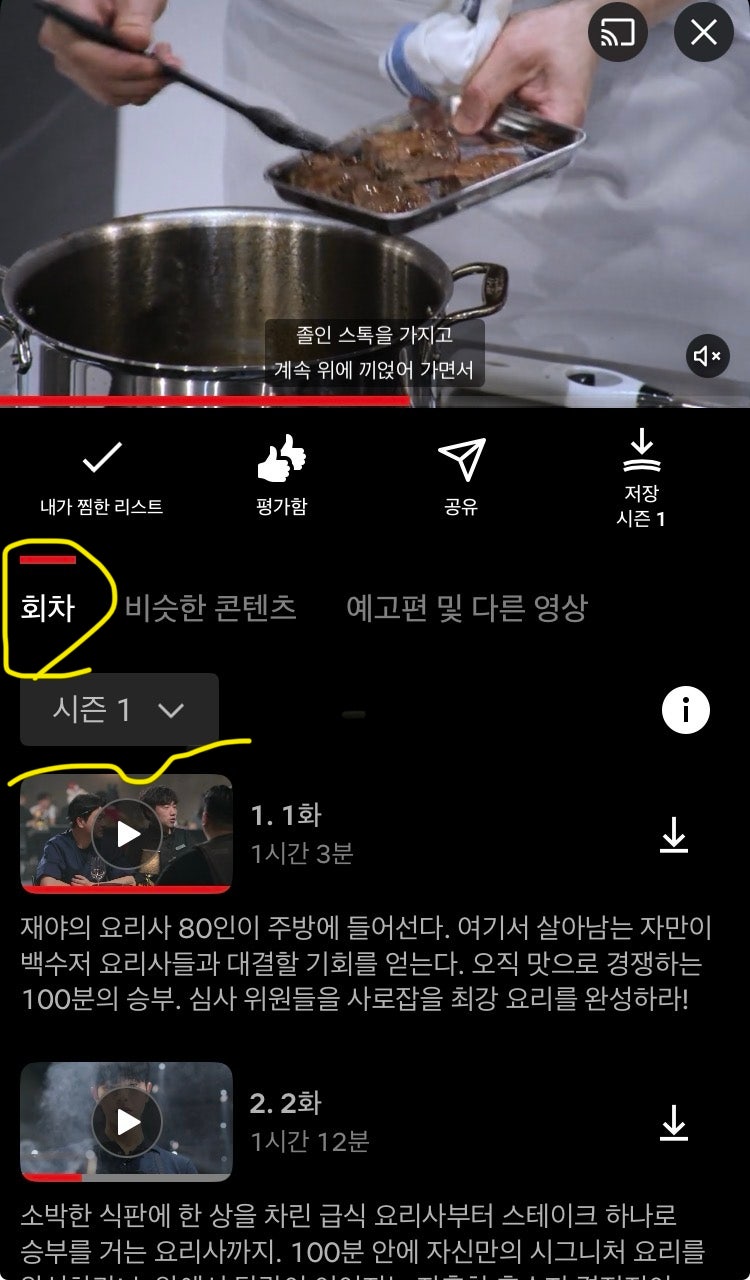 넷플 처음봐서 흑백요리사1보고 싶은데 2밖에 안떠요ㅠ1어캐 봐요?